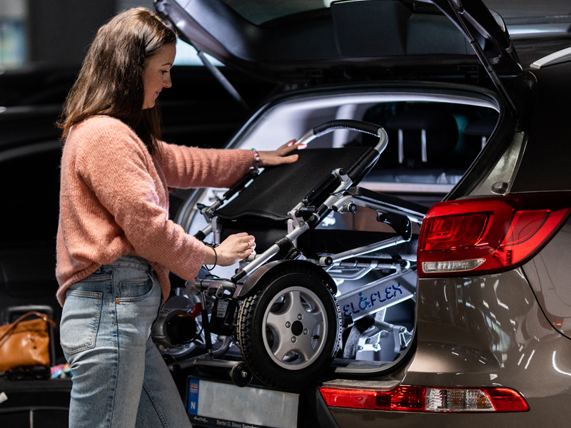 Systém Eloflex se hodí do všech typů vozidel. Nyní můžete cestovat s přáteli, jet běžným taxíkem nebo si půjčit vozidlo, aniž byste se museli obávat potíží s elektrickým vozíkem. Díky nízké hmotnosti ji snadno naložíte do vlastního vozidla.