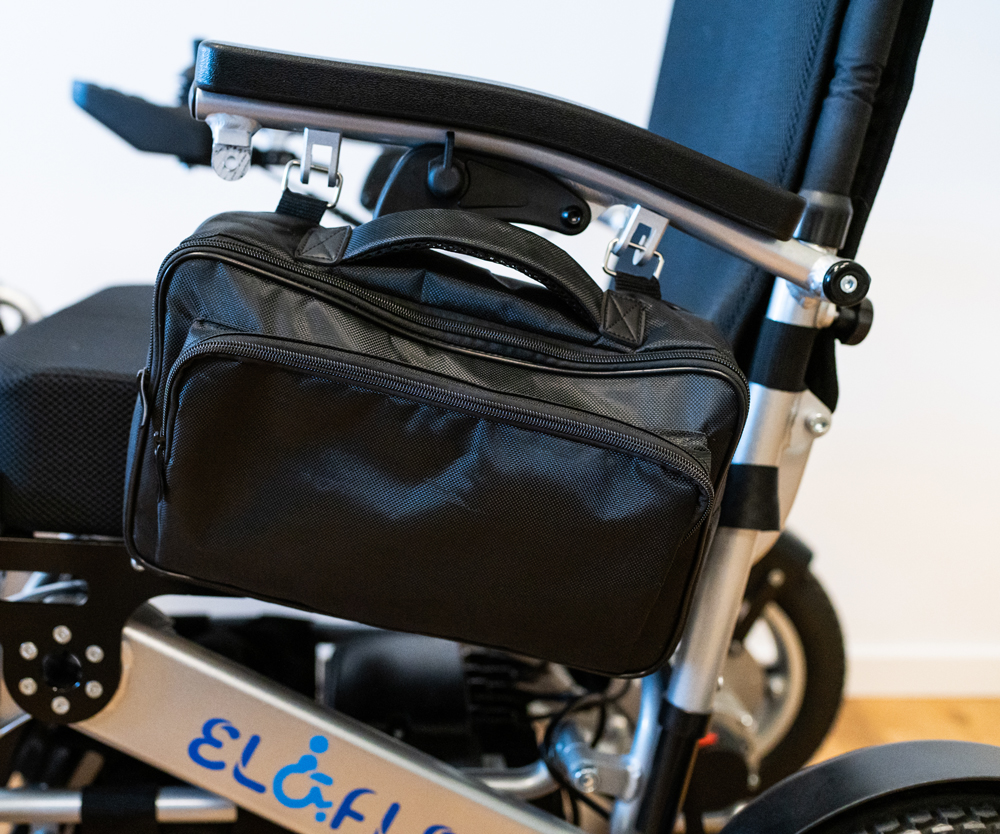 Do boční tašky Eloflex můžete pohodlně uložit věci, jako je peněženka, telefon a další cennosti, a mít k nim snadný přístup. Taška se připevňuje pomocí háčků, které se přišroubují pod opěrku. Chcete-li se dostat ke svým věcem, jednoduše odepněte tašku z vnitřní strany opěrky a získejte k ní snadný přístup bez obav z krádeže.