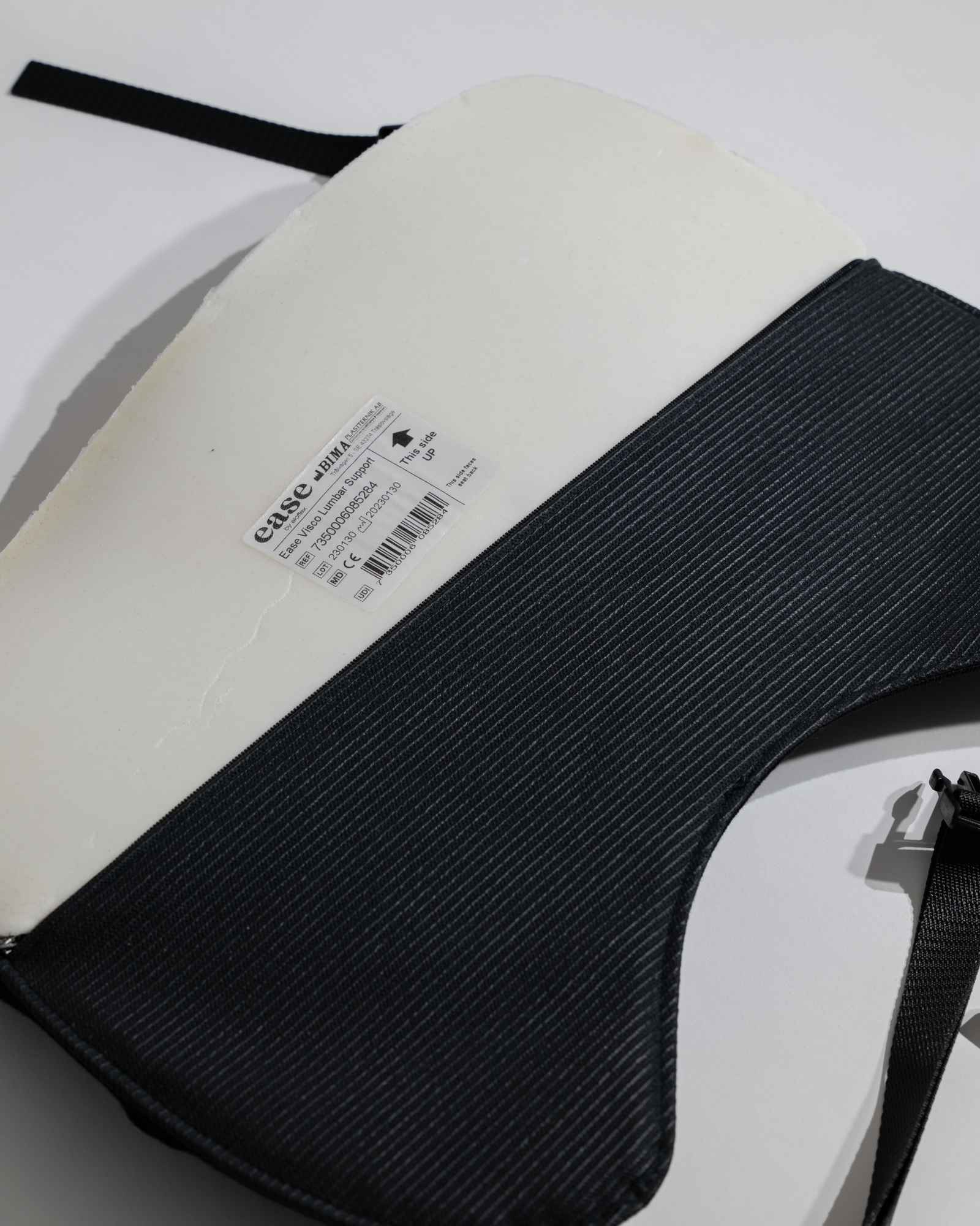Bederní opěrka Ease je vyrobena z pevné a odolné viskoelastické „paměťové“ pěny. Na rozdíl od běžné pěny reaguje paměťová pěna na tělesné teplo a tlak, stává se měkčí a přizpůsobuje se bederní „dolní“ části páteře, čímž snižuje únavu zad.