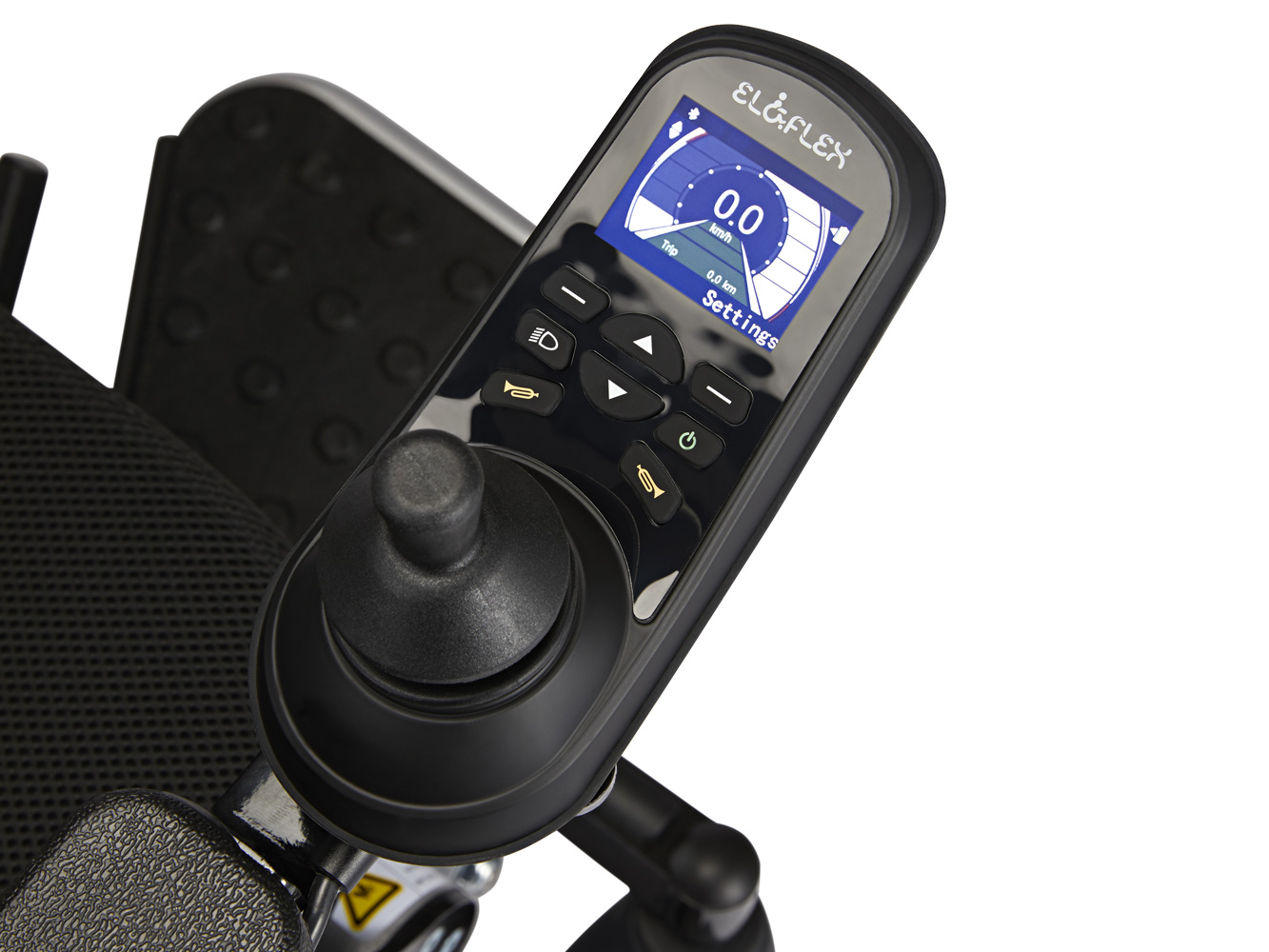 Náš chytře navržený držák joysticku vám umožní přiblížit se k okraji stolů, čímž zlepší přístupnost k sezení u stolu. Opěrka nohou se pohodlně sklápí pod sedadlo a velká zadní kola s pneumatickým plněním zajišťují pohodlnou jízdu i na nerovném terénu. Díky dvěma standardním bateriím a možnosti připojení třetí baterie se dojezd prodlouží až na 45 km a na jedno nabití vydrží 7,5 hodiny provozu.