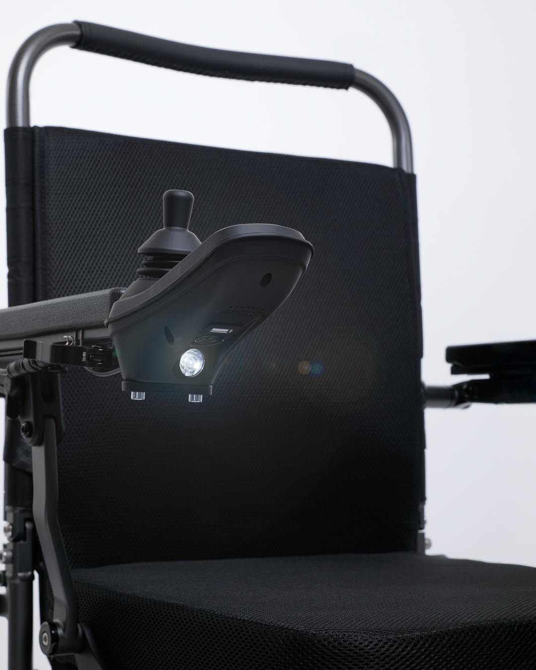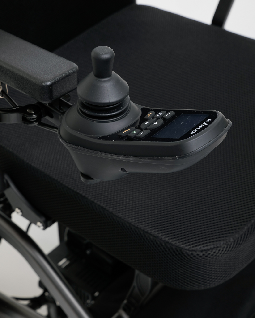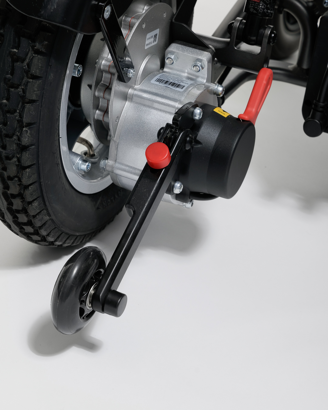 Nastavitelné područky a opěrky nohou umožňují přizpůsobené uchycení a dále zvyšují zaměření na komfort. Tento model je vybaven třemi sloty na baterie, což umožňuje prodloužené používání pro delší cesty. Když je složený, praktický bezpečnostní zámek udržuje invalidní vozík uzamčený ve složené poloze pro snadnou přepravu a uskladnění.